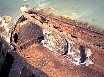 Probably the worst section of rust found on the basically sound car. Fortunately Pat Lockyer is a pretty darned good welder. |