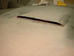 | Spraying in progress, using metallic silver, not dissimilar to the Dove Grey... | ...which was colour the car was wearing for its appearance the 1951 Paris Salon. | All these pictures were taken during the latter half of January 2003. |