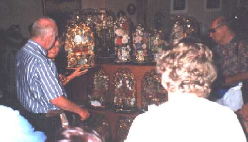 Inside the ch�teau, we admired an amazing collection of the most ornate bridal headdresses you will see anywhere. Tim Wise (blue shirt) ably translated Madame's description of the exhibits. |